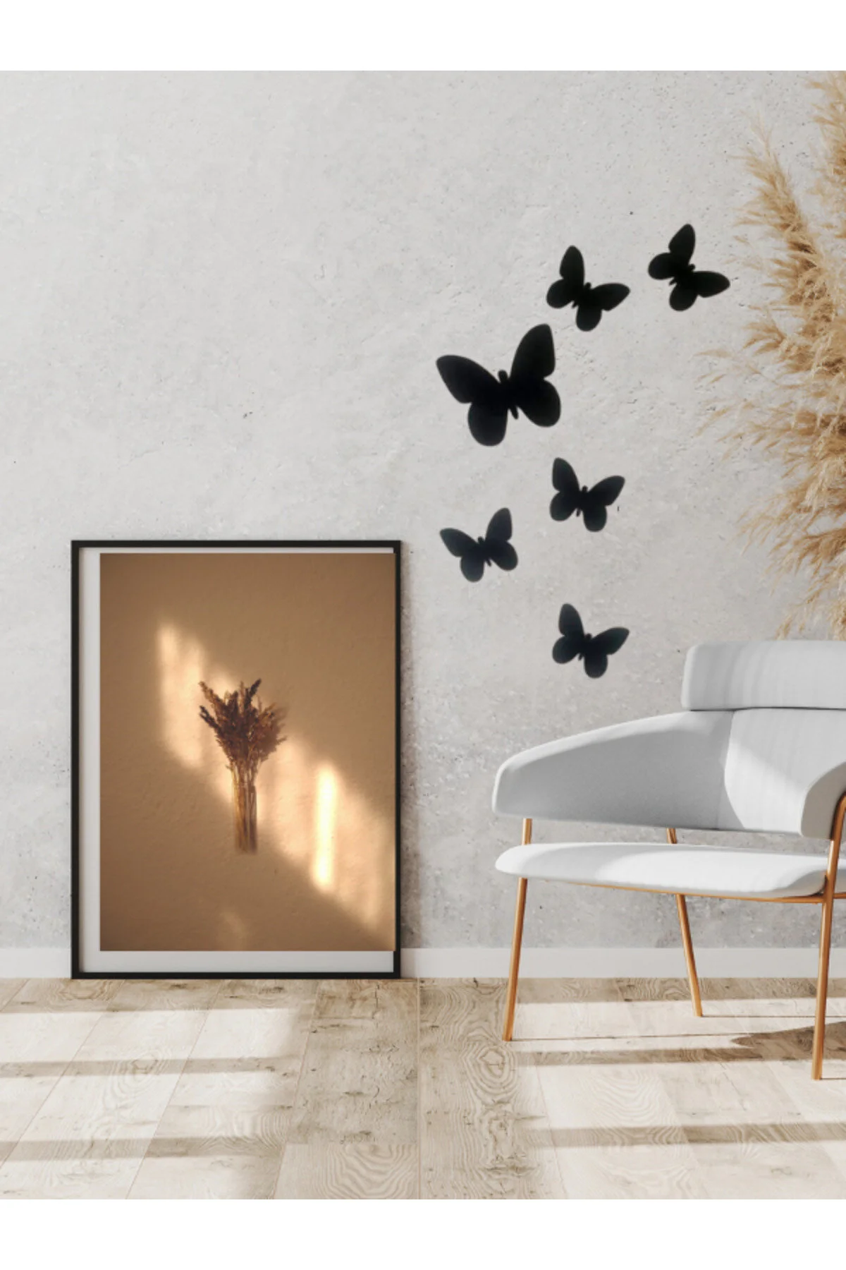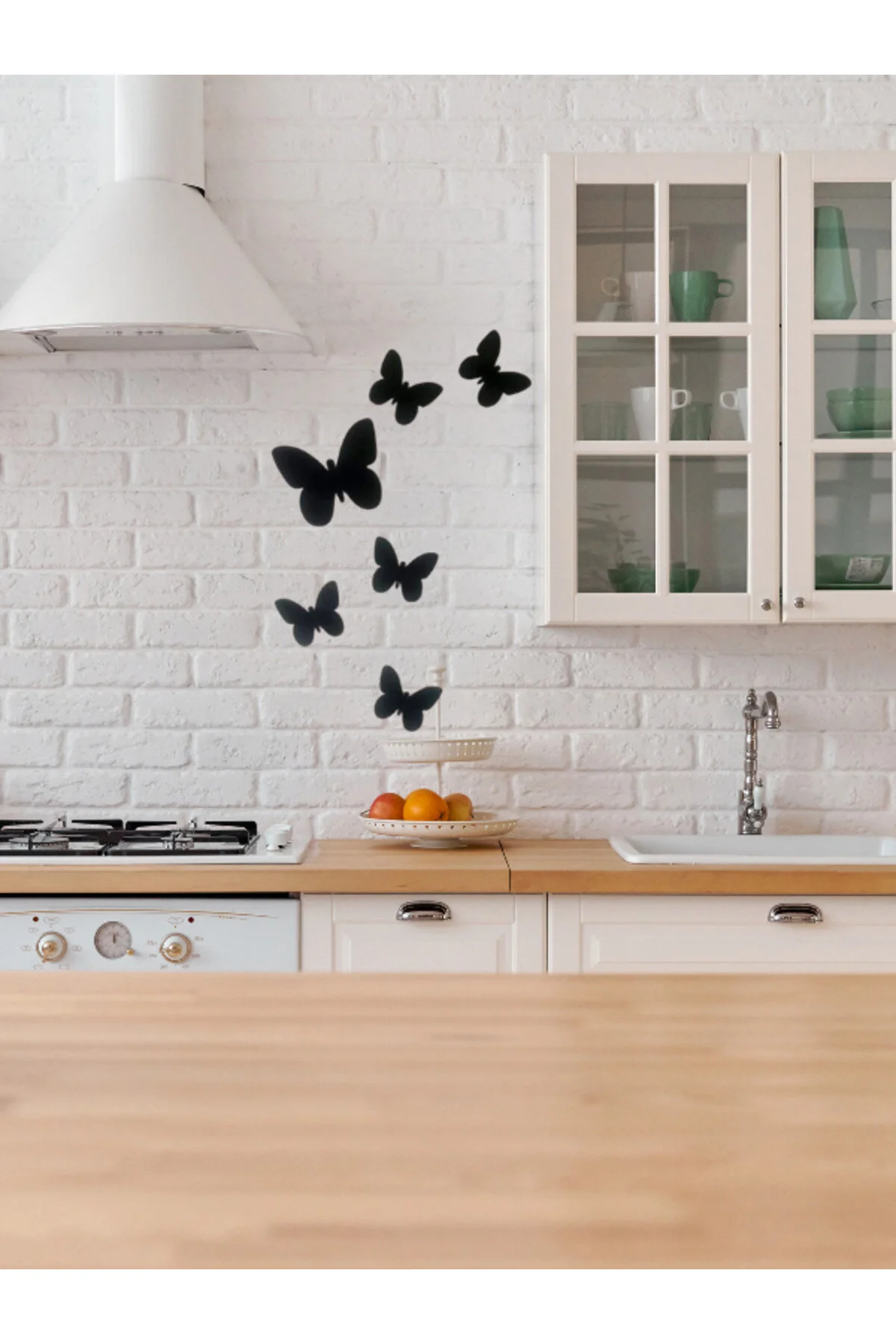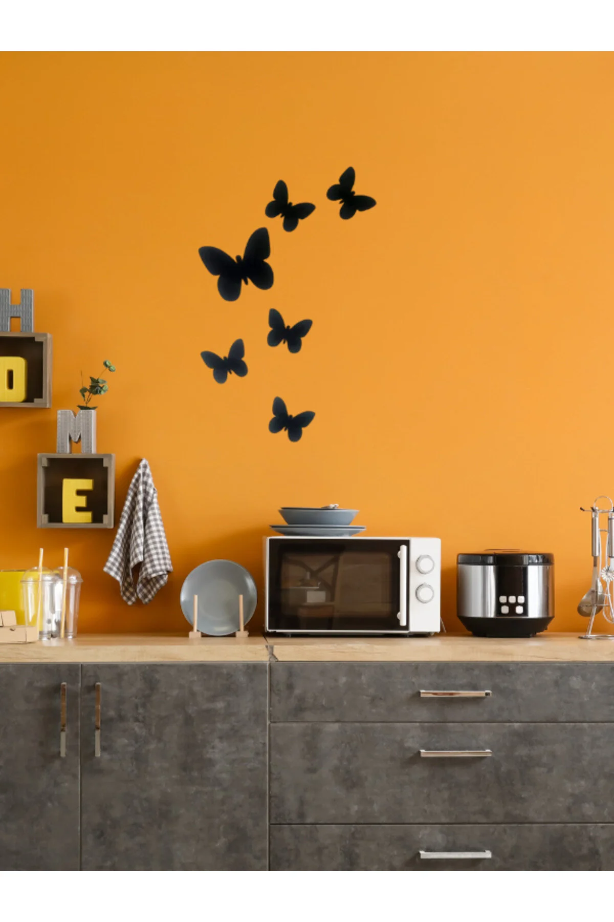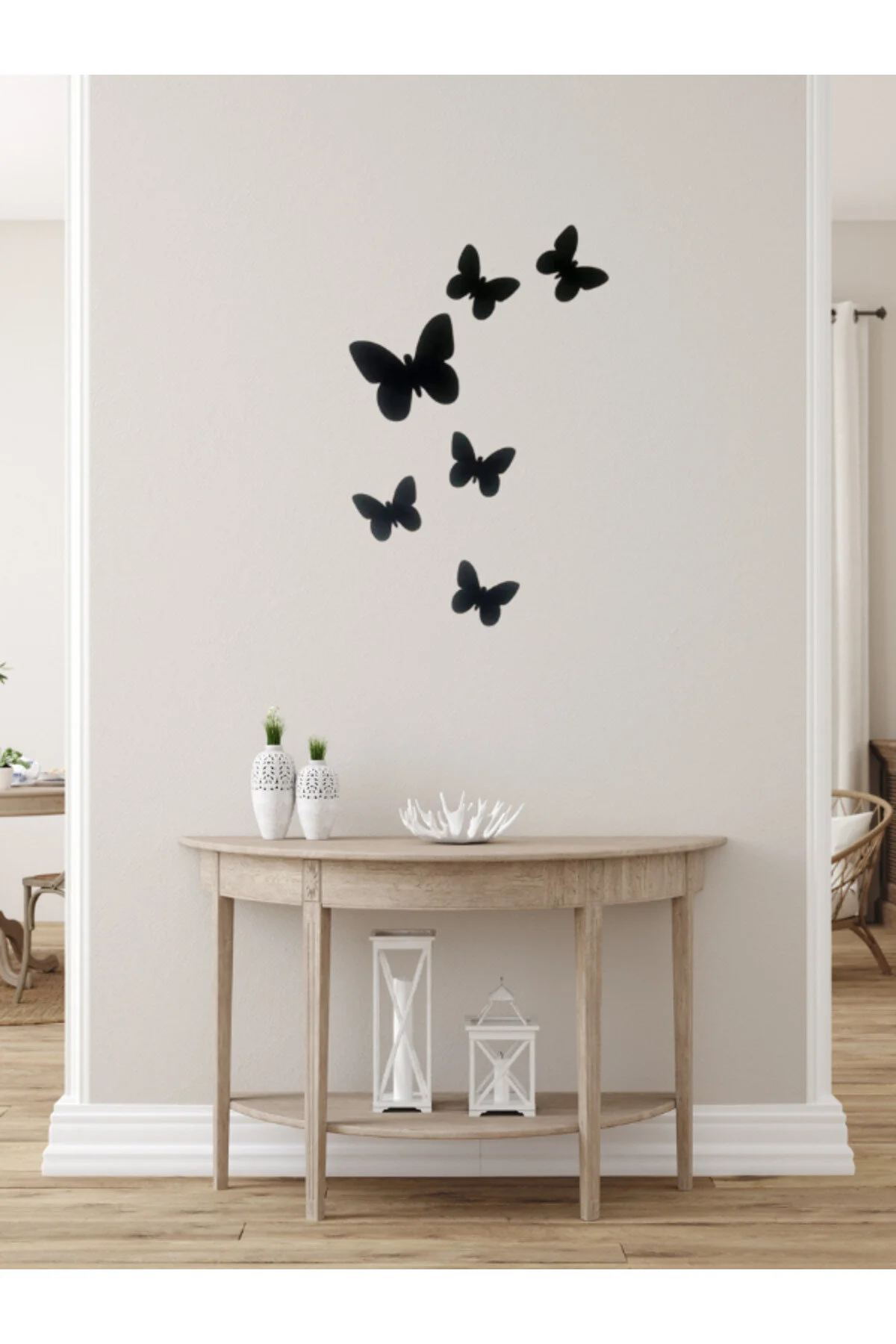 Dekoratif Ahşap 6’lı Kelebek Duvar Süsü Siyah 50×40 Lazer Kesim Duvar Dekoru